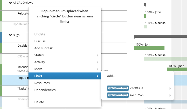 Tasks can be linked with external resources as Git repositories, cloud storage services or CRMs. Perfect for software developments based on GitHub, Bitbucket, CAD tools, art designers...